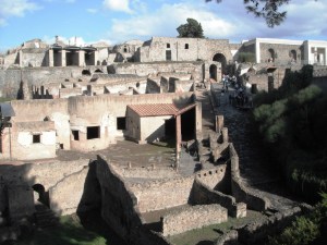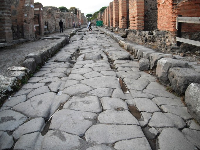He told me the population was probably 15,000, and explained which streets were the main streets, and even what they were called. During heavy rain fall, the streets flooded into small streams, and big stepping stones were used to get across the streets. The high traffic of horse-drawn chariots actually left wheel tracks in the massive stones, which were supposed to be fixed by taxes collected from the people living on each street. He knew who lived in what house, and what they did. Many made wine and fishsauce, and kept them in big ceramic pots, and others were artists or bakers. There were athletes too, and gymnasiums where they trained for Olympic events – which they always competed in naked.
