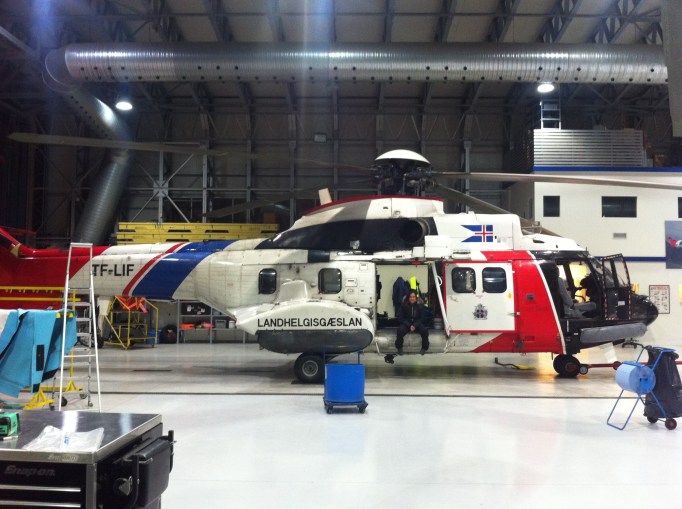 Frikki is a doctor, not for the coast guard (yet…), and they don’t mind flying with a couple extra people since they can practice mock-rescue situations. We were fitted with some fancy helmets too, and told to do exactly as we were instructed at all times, including the moment when we would get dropped out of the helicopter with just one cable cord as our life line.