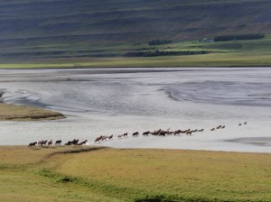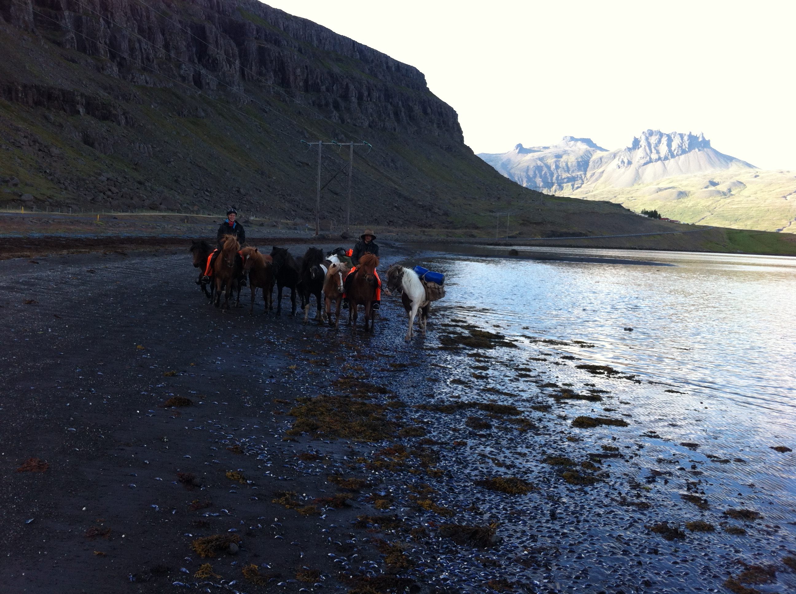 The last tour was an extra long 9 day tour, a 300km trek from Höfn in Hofnarfjorður, over Lónsheiði and through the Fossdalur and Geitdalur paths we paved on our staff tour. We rode in and out of the dramatic south east coast, with glaciers or the ocean constantly painting our background. Highlights included taking whole herd for a gallop way out in the sea (through a shallow tide) and almost losing the entire herd in a glacier river as they tried, unsuccessfully, to take a shortcut home.