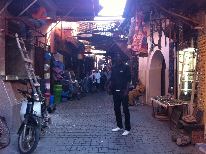 I spent my first day wandering into town alone and was met by a Senegalese man named Adams. He was tall, thin, and dark as night, but I welcomed the male company to guide me through the maze of souks we ended up hopelessly lost in. He helped me bargain for the right prices and towered over me like a guard from unwanted harassment, and visited two palaces with me also for his first time. We sat on the sidewalk for some fried bacalou and eggplant that Adams argued should have cost 50 euro cents, not 60, but I didn’t care – it was delicious and cheap and the toothless woman who served us provided endless entertainment every time she tried to speak the Berber neither of us could understand.