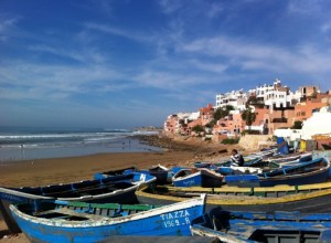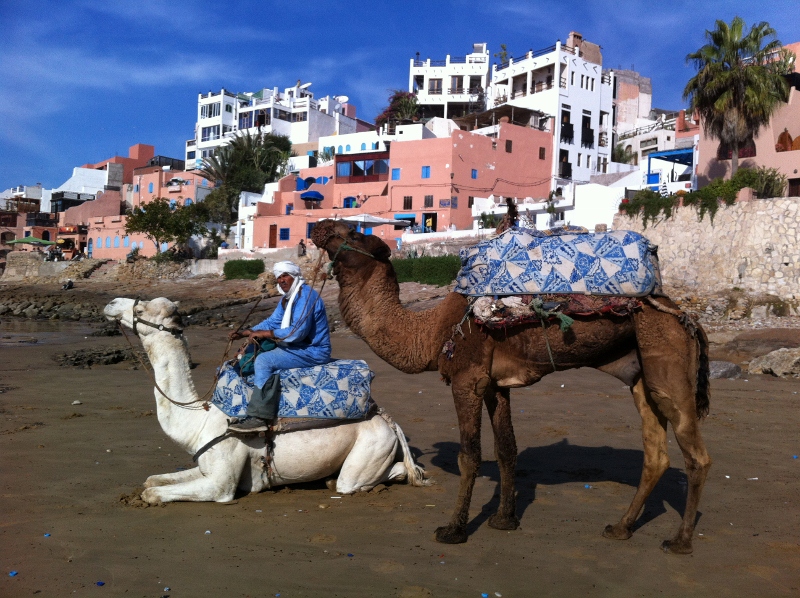 As I traveled south, through Agadir and onto Guelmim, I took grand taxis between towns. The grand taxis aren’t any bigger than the petite taxis, but their routes are longer, a hundred or more kilometers, and they don’t leave unless they have 6 paying passengers – two in the front seat beside the driver, and 4 in the back. It’s always a struggle to strategically plan which seat you take and beside who you sit, since you have to choose if its more comfortable to be squashed against the hard door and have window access or be sandwiched between two people who may be hard or very soft (which usually means too big). I always got suckered into being squashed between the women if there were two, and their many layers of flowing cloth always spilled over me and their chatter across me kept me both comforted and stuck. I once got unlucky and sat beside a man who insisted on pivoting to face me with his arm around me and his stinky breath breathing down my neck asking me incessant questions. After 20 minutes of this I asked the taxi driver to stop and he thought I wanted to get out there and then in the middle of a mountain pass, and I started to explain I just wanted to change seats but the two women already knew what was wrong and had started shifting for me to get sandwiched between them. They held my arm and smiled knowingly, and then yelled at the man and the taxi driver for the rest of 1 hour drive.