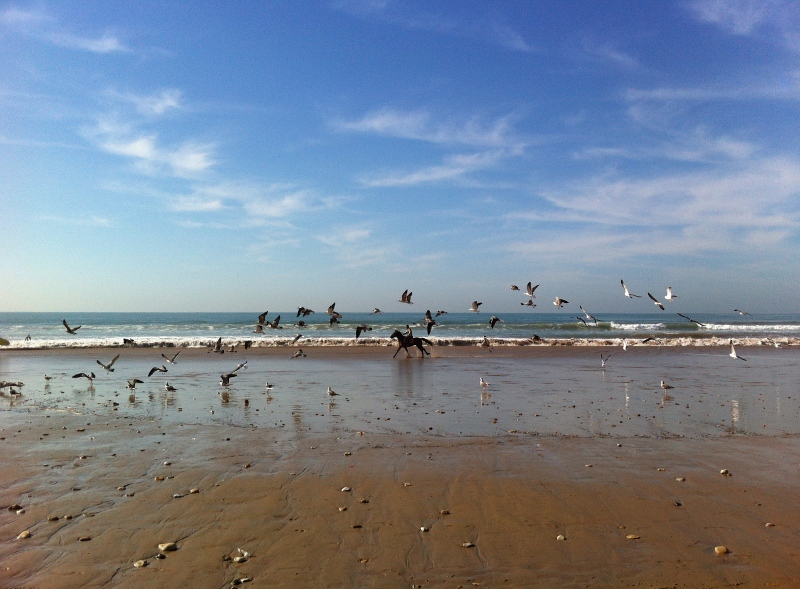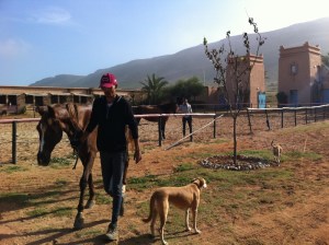 I got kind of stuck in a small city called Abaynou after sunset because the hotel I planned to stay at was fully booked. I wanted to bathe in the natural thermal baths in the town but they too were closed only for Moroccan families. I stood at the entrance of the hotel with the guard wondering outloud what to do, and a jolly French man emerged from a truck parked a few metres away. He stole the attention of the guard and they started talking about some lost guy he was waiting for and that this guy was on his way, on his way, coming any minute. The truck was pulling a horse trailer and I figured out that the guy was lost on a horse, and the French man was waiting for them to drive them home. I asked the French man if he had more horses, and where he was headed once he found the lost guy. He had a farm with 20 horses about 1 hr away, on the coast, which was also a hotel, and I immediately invited myself to it. He said fine, so long as he helped me find the lost horse and rider, and about 1 hr later they appeared out of the dark and we loaded the sweaty horse into the trailer.