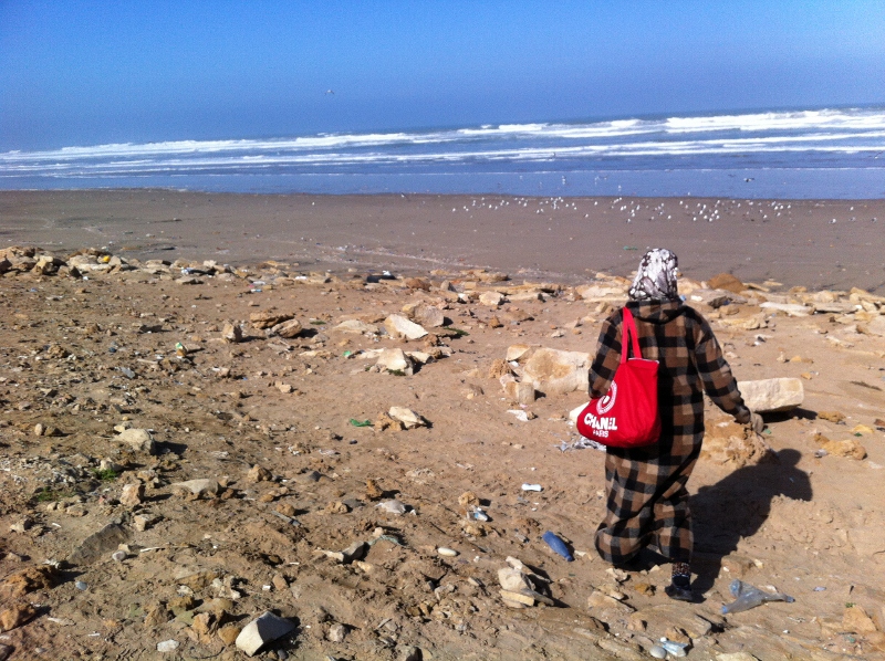 In another grand taxi, I thought the woman wanted to take me home with her, but she just wanted me to get out of the car to hold my hands for a moment, muttered some words, nodded her head and bowed many times – Im still not sure what the gesture meant but it was nice. In the last grand taxi I took, the 300km long haul to La Ayoune, I shared the backseat with 3 very large Saharan women, which meant I was only left with half an ass cheek on the seat and could only lean back if I lay on one of their breasts. Thankfully we stopped halfway for a lunch break and I was summoned by one woman to walk down to the beach with her to share her lunch. We ate bread and tangine and oranges, and sat in silence taking in the sight and serenity of the polluted beach around us. She showed me the henna on her ankles and arms, and jingled the bangles on my arm in an approving way. When we returned to the grand taxi, the other woman took turns walking up beside me and just standing close in a protective motherly way, and they also jingled my bangles. One sprayed me with 10 or more sprays of perfume, all over my neck and arms, which may have meant I stank or it was just a normal thing to do after we’d eaten.