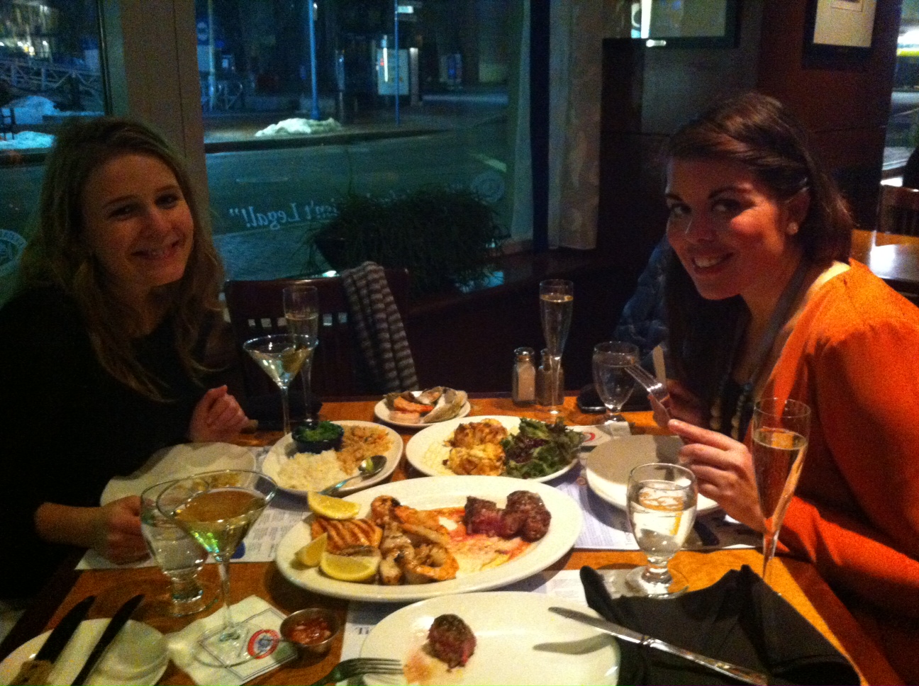 We had sushi and wine for lunch, and then the most amazing dinner at Legal Sea food. It had been organized through a friend of a friend of a friend, and included cocktails, champagne, wine, all the seafood and shellfish you could dream of, surf and turf mains, and finally a happy birthday song to present the icecream dessert.