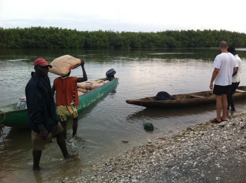 We crossed the border from The Gambia to Senegal yesterday on a carved out tree, the sides of the boat barely keeping water out. Some guy paddled us across for €4, the most expensive price per distance (100m) we’ve paid so far. We then took a 4×4 Land Rover as our taxi to the nearest town, which involved a very narrow, overgrown, water ridden dirt track, so felt very relieved we hadn’t taken the motorcycle taxis also on option.