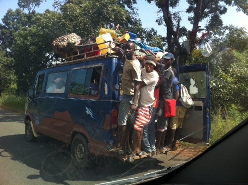 First of all, no one has any idea (or respect) of time, so 3 African hours can easily equal 6 normal hours, and you have better luck asking how many kilometers are left, although that still doesn’t help you guess how long until you’ll reach your destination. The roads are pretty terrible, and none of the stops along the way seem to be planned or timed. But Bon voyage anyway 🙂