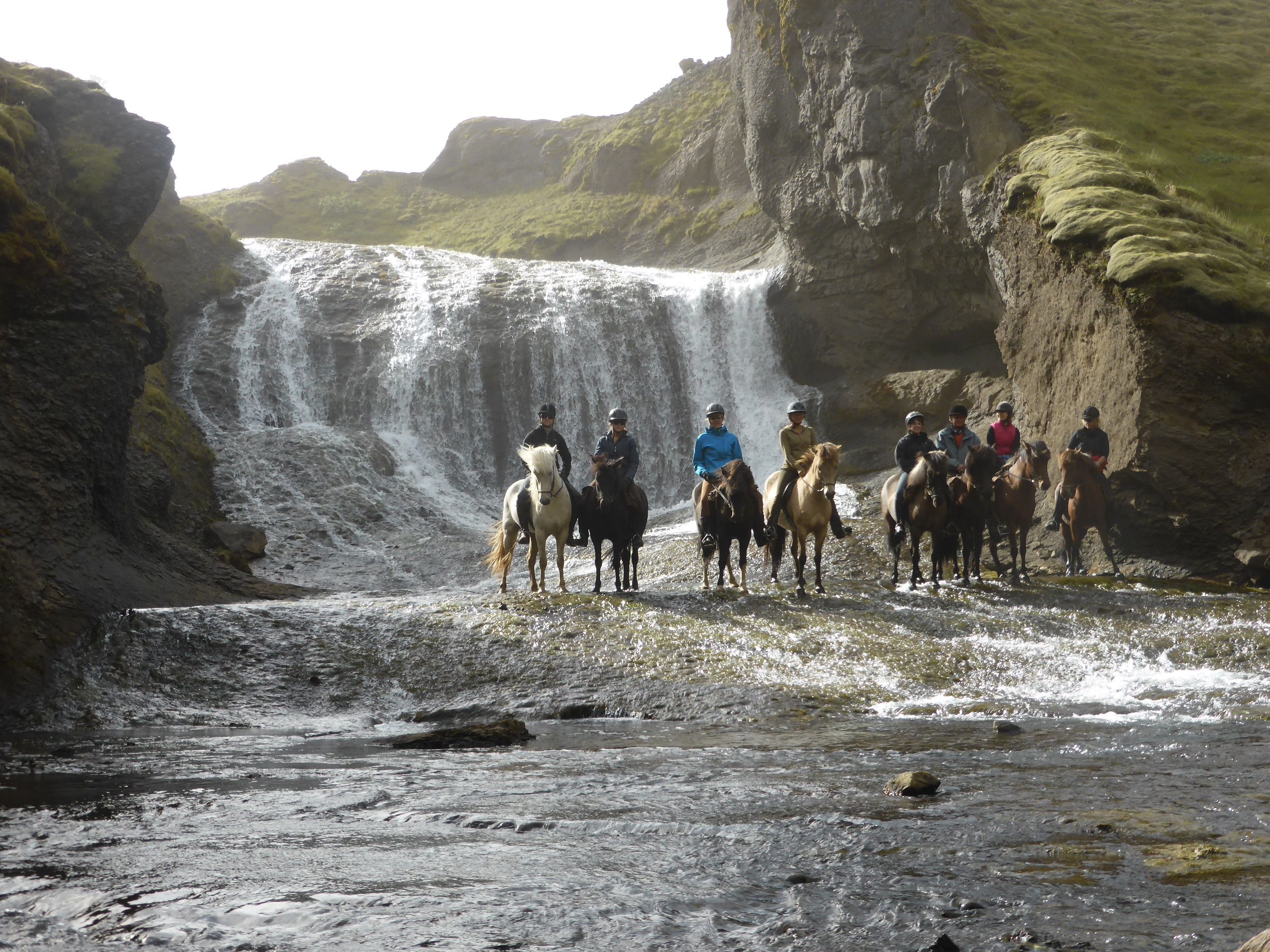 There’s an area of Iceland between the glaciers called ‘Fjallabak,’ or ‘the mountainside,’ which may or may not be the most beautiful trail I’ve ever ridden in Iceland. It rides past the infamous Eyjafjallajokull and the Laki craters, a volcanic lava field created in an eruption 250 years ago. I may be a bit biased, since we had perfect, sunny weather the entire 6 days, but any or all visibility you could have were stunning, breath-taking views. There are glaciers and mountains in all directions, sand deserts, lava rock fields, yellow mountains, green moss and water galore. We saw beautiful waterfalls on our first day, rode over grassy fields at sunset on our second day, and through volcanic canyons on our third day.