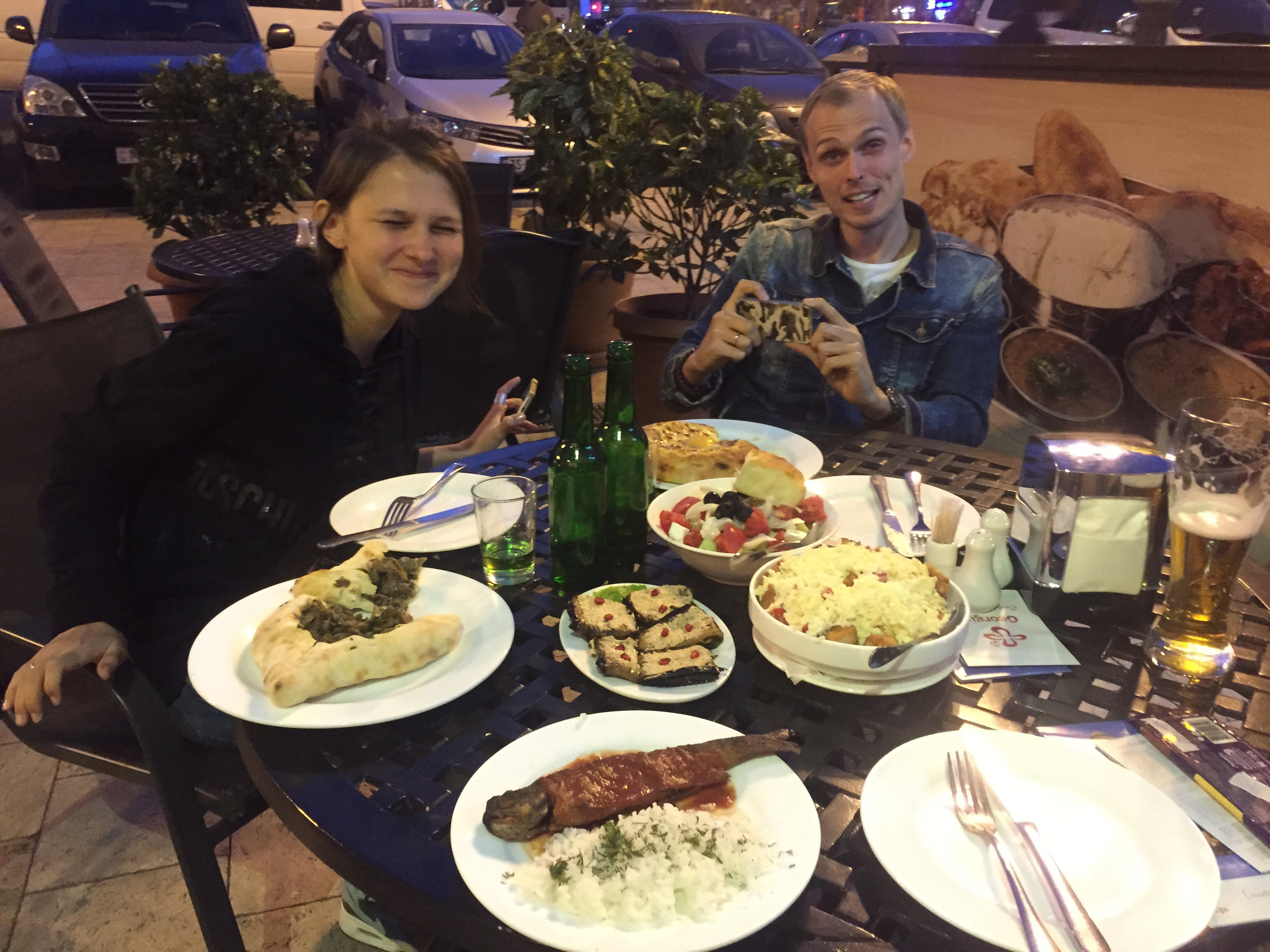 I stayed in a house of Turkish guys and their one Azeri girl friend, and I mostly ate home-cooked or restaurant bought Turkish food. Not surprising since Azerbaijani people and language are very closely related to Turkey, and Baku felt a little like Istanbul meets Dubai. They have a lot of oil money, highrises, and extremely clean streets (one guy’s theory is that its because women clean the streets), while a cup of chay and the doner (and Turkish people) are everywhere.