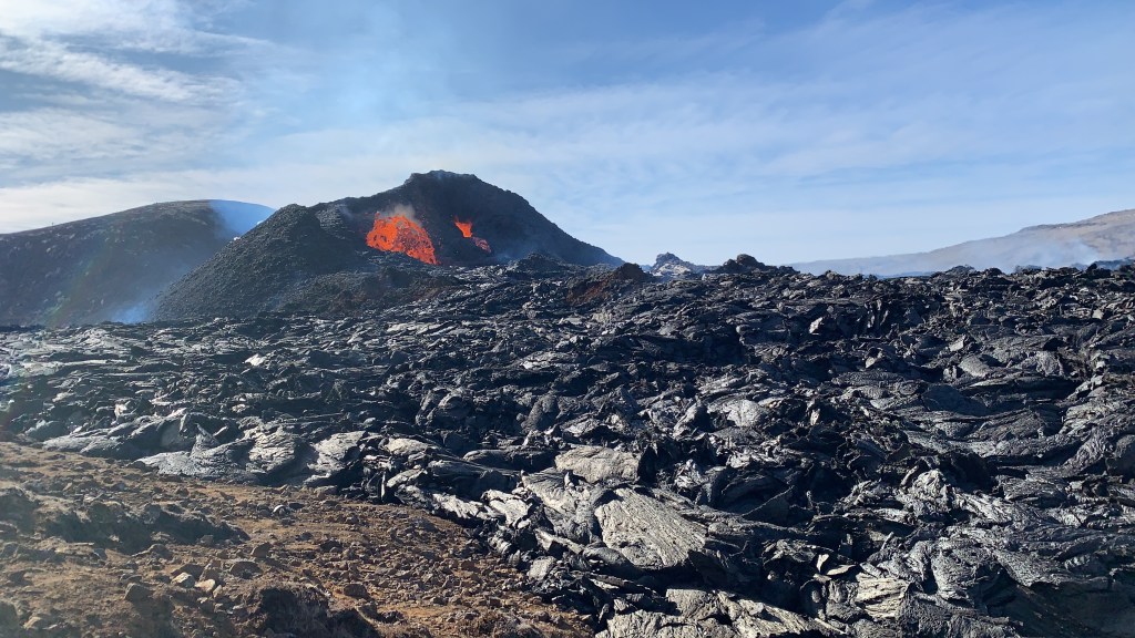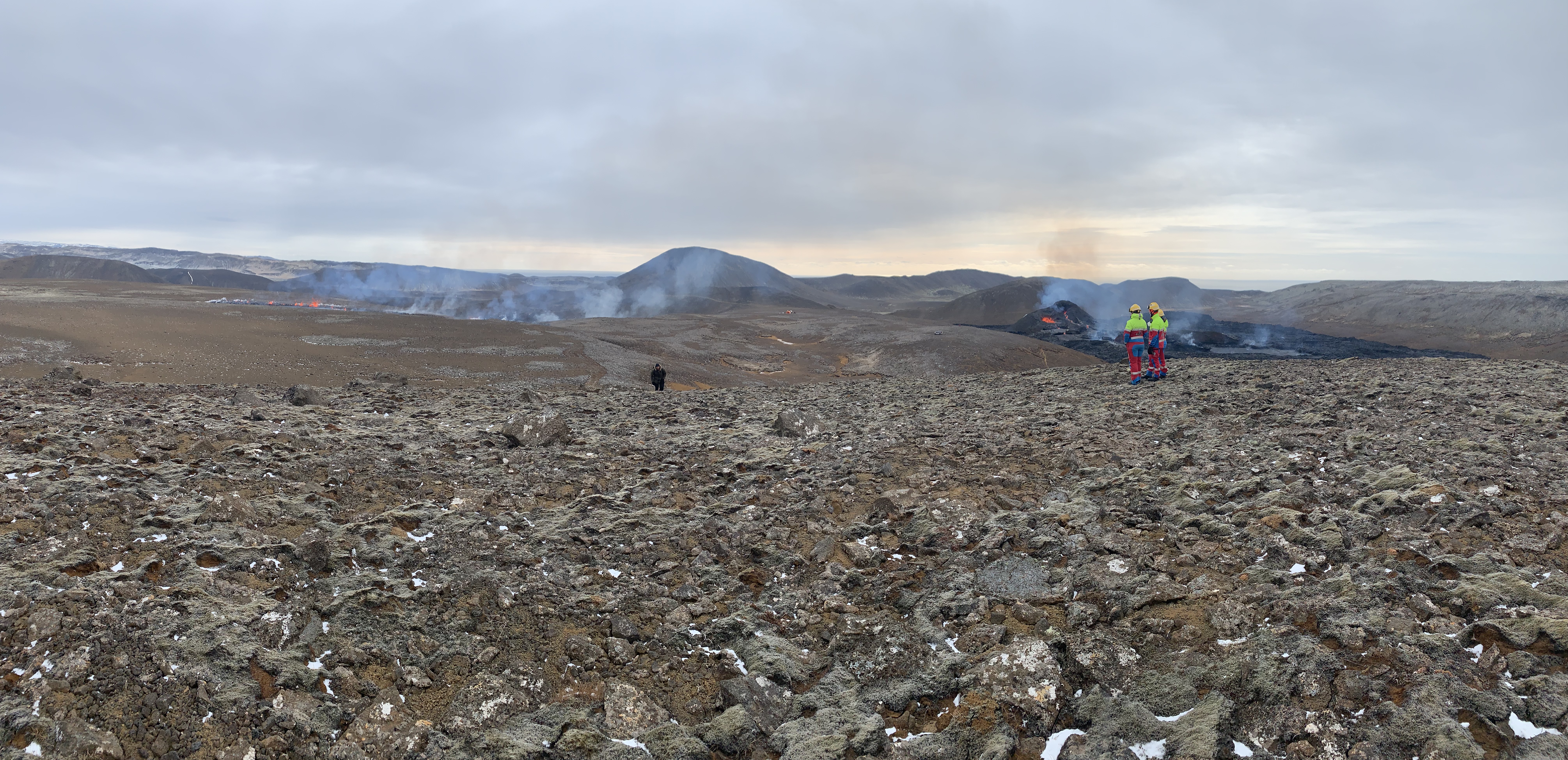 Another eruption started around noon Monday, only 500m from the original volcano in Geldingardalur. I was so lucky to be there at that exact moment, after booking a helicopter trip for 11:20 that day and being offered an extra long stop (45 mins instead of 30) by Noona.is. We sat and watched the original volcano site, listening to melting earth splatter and flow, and felt 3 earthquakes in a matter of minutes.