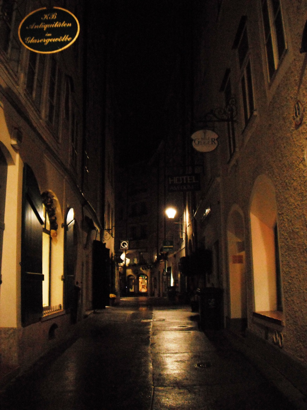 It was maybe 6 degrees, pitch black, and drizzling, but I figured I couldn’t waste the opportunity to see Salzburg – and anyhow, sitting and waiting alone outside on the platform seemed like a silly thing to do. I needed coins for the left baggage lockers and the only place open was a dingy, smoky sports casino that probably gets asked for change at 3 am every time the Vienna-Zurich train takes this scheduled route. I locked my bag in a locker as one other traveler pulled out his sleeping bag and cacooned himself inside. For a second I considered doing the same, but only out of laziness, and decided not to since it’d be weird if I just copied him and then we’d both be lying on the ground in awkward silence.