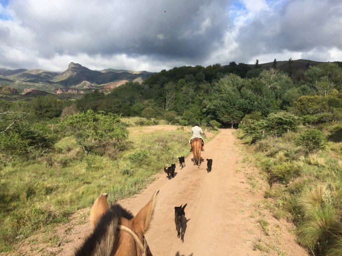 We spent most of our days on horseback, with a gaucho or two, and atleast 5 dogs. One dog was slightly smaller than the rest, and he would barely see over the tall grass or worn trails at time, but always insisted on coming with us, climbing even to the highest point at Condor Mountain.