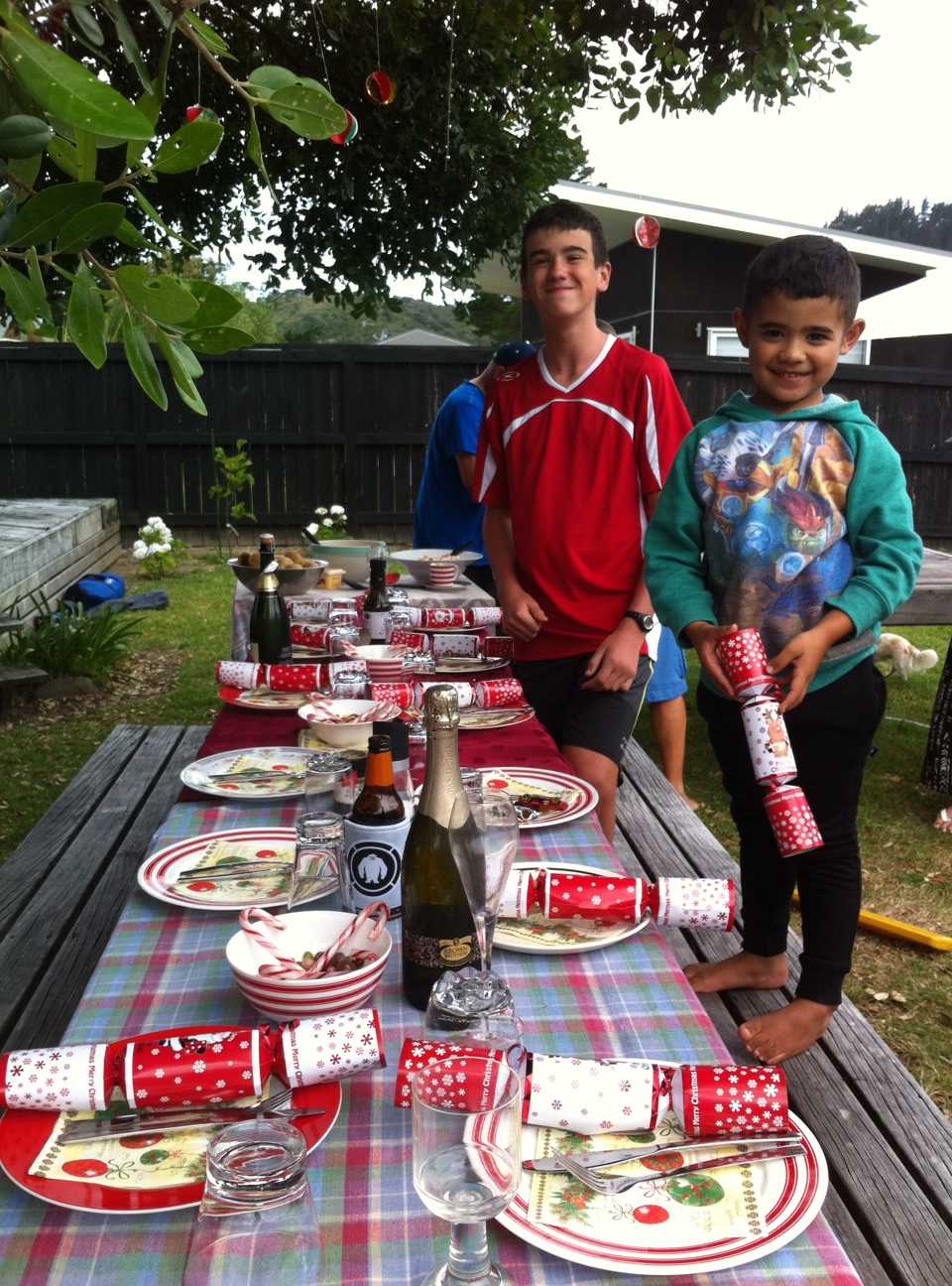 My Christmas was spent with Gaylene and her family on the beach in Coromandel, a beautiful peninsula a couple hours drive from Auckland. On Christmas Eve, I had baileys and coffee for breakfast and Raewyn and I went riding on the beach. Then we set up our tents at the beach house where 12 others joined us, barbequed a feast fit for kings, and drank baileys for desert while playing card games. Christmas day was much the same, and we barbequed breakfast too. We opened our gifts in the morning, and I couldn’t believe the stack of presents with my name on it, in this family where I had just days before been a complete stranger. After a short break came champagne and chocolates and Christmas poppers for lunch, but then we ran out of room for dinner.