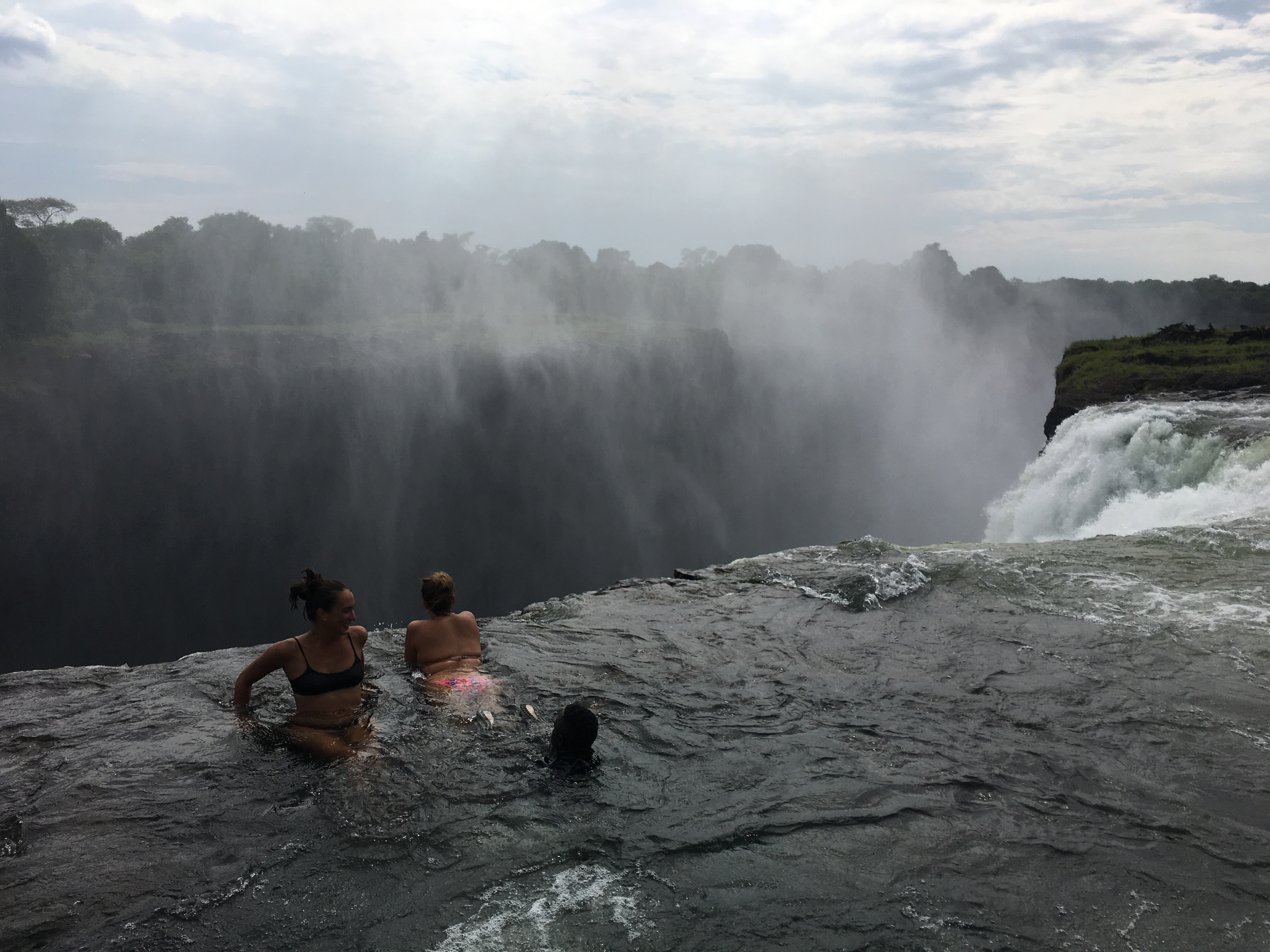 Everything is an adventure or activity that costs either a lot to run, or they charge whatever they want because it’s a once in a lifetime opportunity. Actually visiting Victoria Falls is barely worth it this time of year, as the end of dry season (and dams upstream) leave almost no water flowing on the Zambian viewing side (but the Zim side is full blast). However, you can walk along the top of the falls closer to the Zim side and swim at the top of the falls for $75. Some wouldn’t do it if they were paid $75, but it was totally worth it for me, even though I knew it was a rip off.
